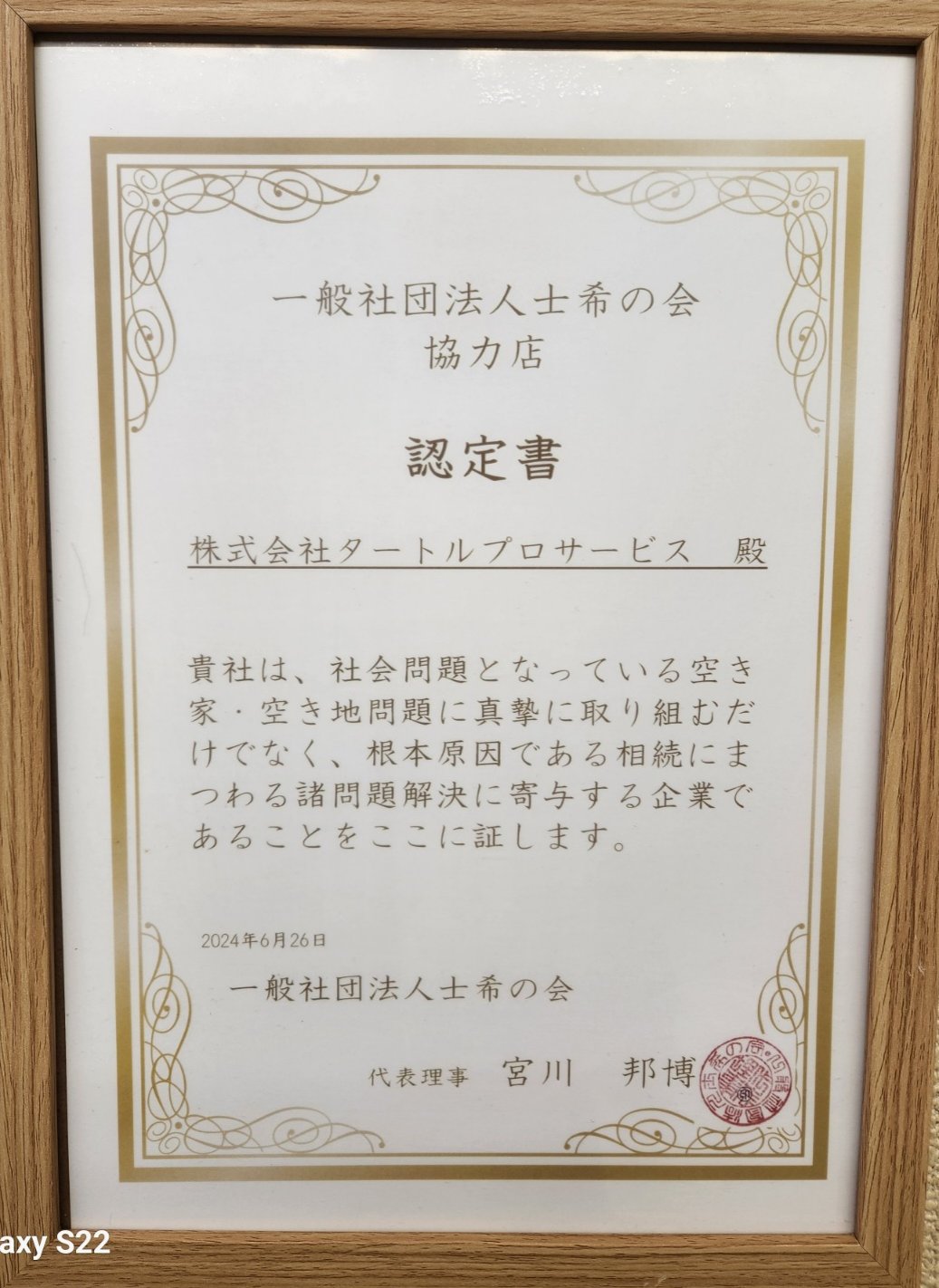 この度、「士希の会」協力店に認定して頂いたことで、相続という不動産問題の根底にある悩みの解決において、親子二世代、三世代、場合によりそれ以上に渡る絆の橋渡しの可能性が広がることに喜びを感じております。